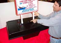 3. Completed ShowModel table top with guide pipes, and Billboard being installed. Note the eye bolt protruding through the top, ready for your padlock, to protect your valuable leads Click to enlarge image for greater detail.